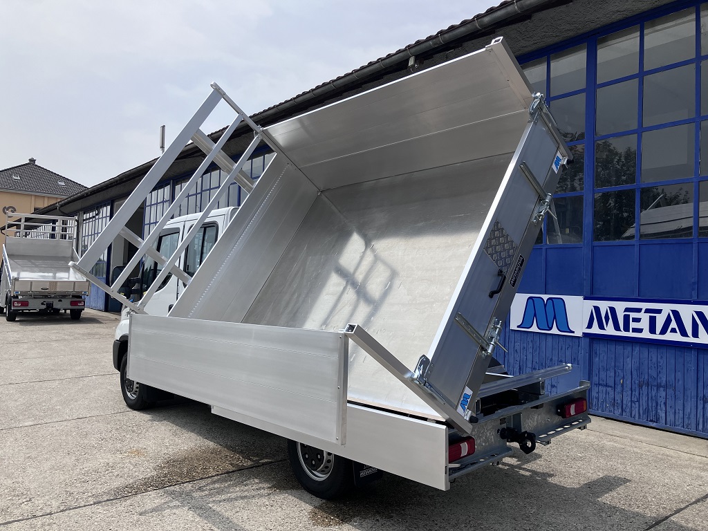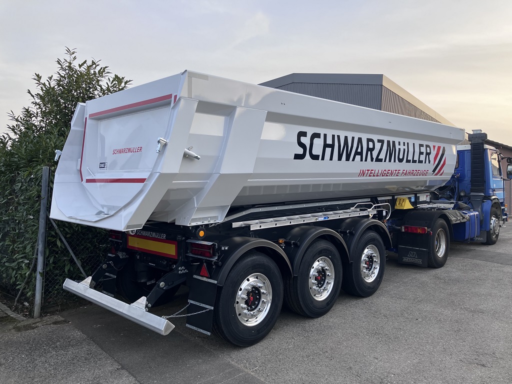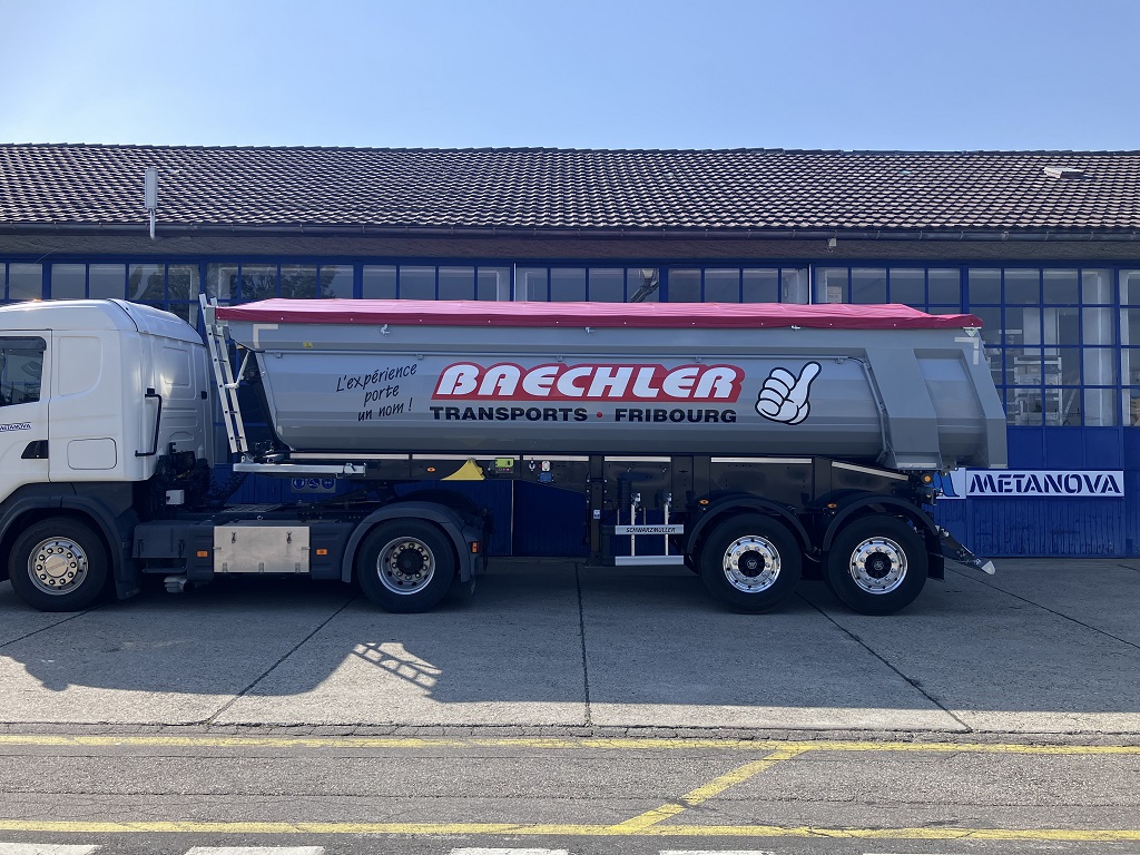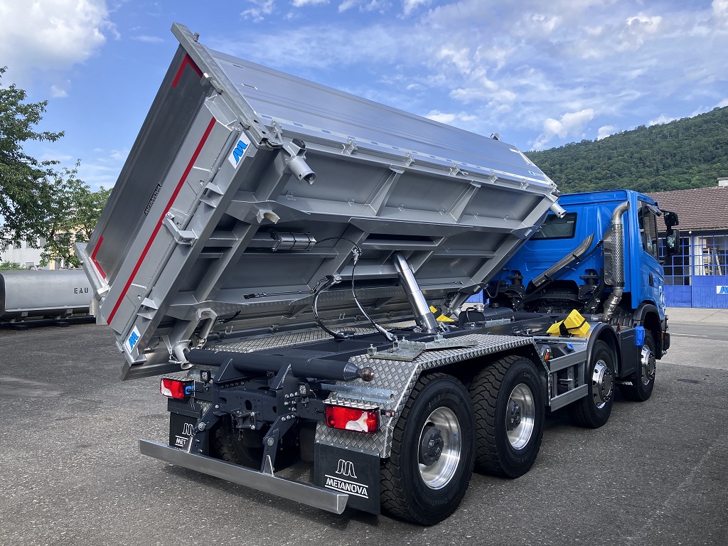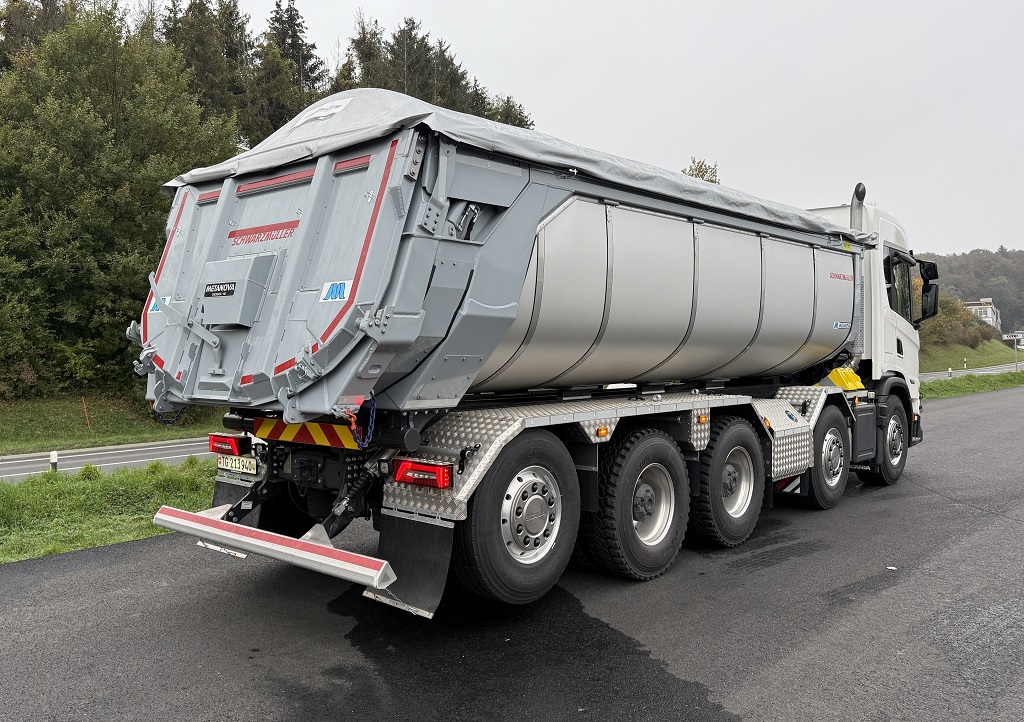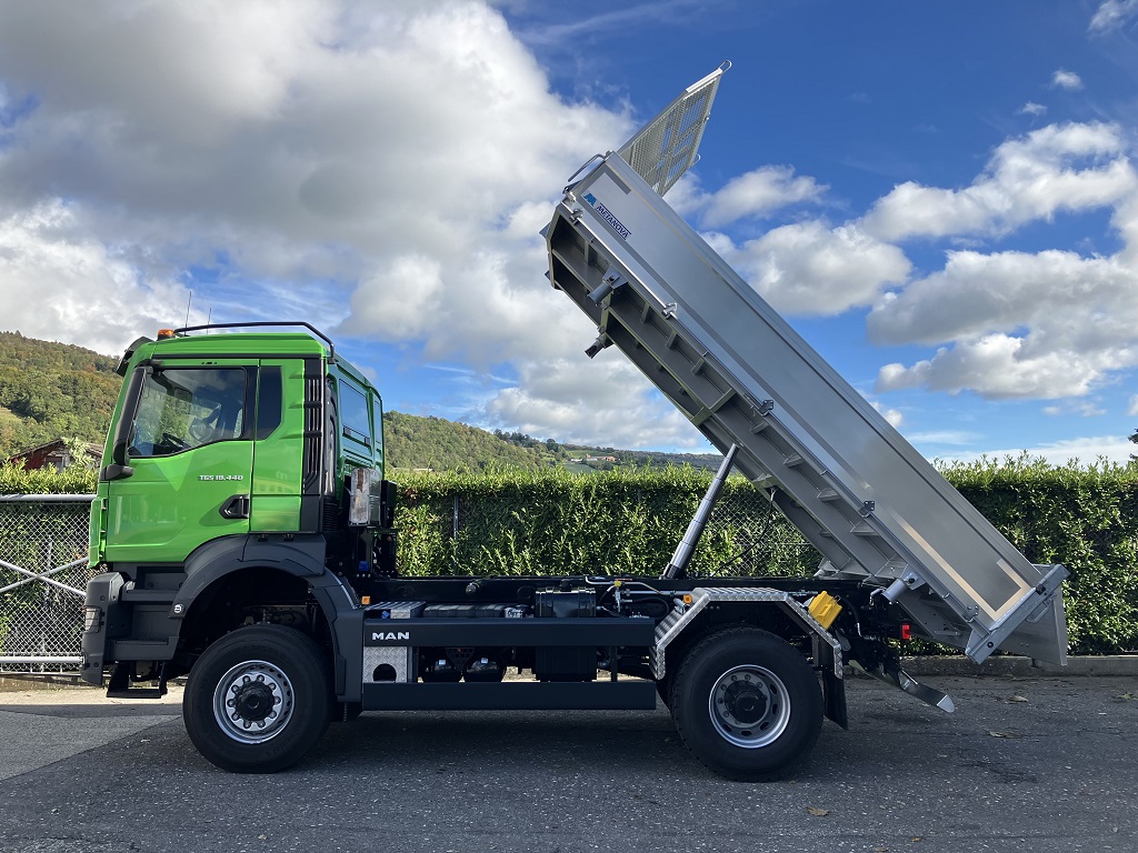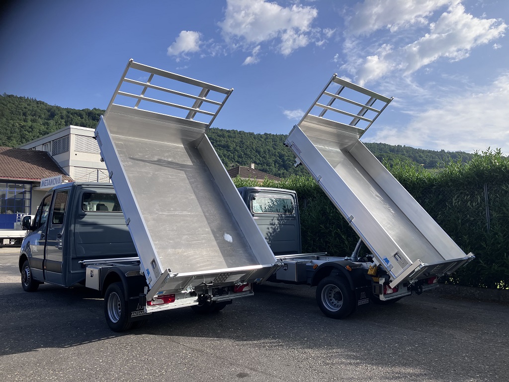 La nouvelle benne basculante 2 côtés à rocher, avec fond et haut de benne renforcés en acier, a été livrée et sera visible sur les routes alpines.